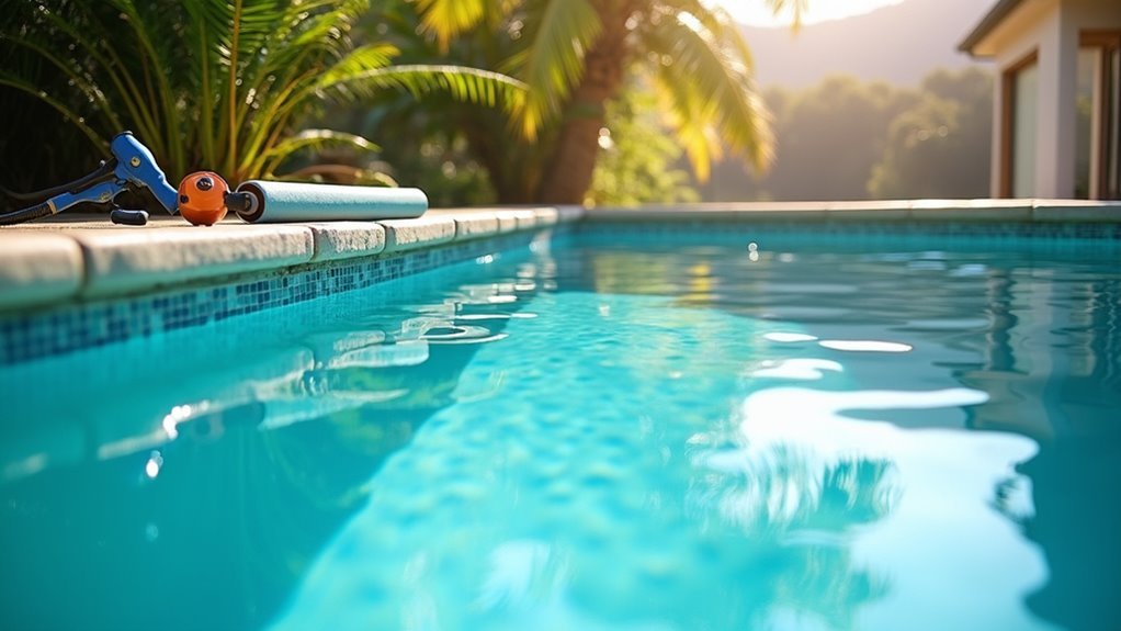 To maintain your pool liner’s pristine condition, regular care is vital. Start by keeping an eye on the water chemistry. An imbalance can cause the vinyl liner to deteriorate faster, so test your water’s pH and chlorine levels frequently. We’ve seen many pools develop problems simply because of neglected chemical levels. It’s also wise to inspect your pool liner for any signs of damage or wear, such as wrinkles or tears. These can lead to leaks if not addressed promptly. Utilise professional maintenance services to repair any small issues before they escalate. This routine care will significantly prolong your liner’s lifespan, ensuring your swimming pool remains a beautiful and safe spot for relaxation.